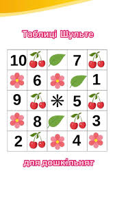 - Включайте в тренування уваги різні варіації таблиць Шульте.